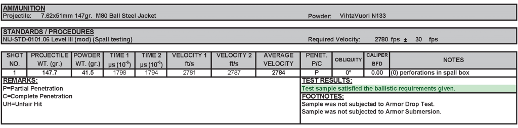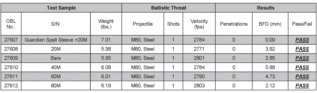 All testing was performed by Oregon Ballistic Laboratories (OBL) an NVLAP Accredited Independent Laboratory.